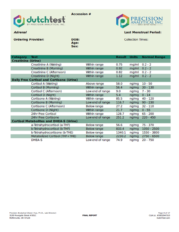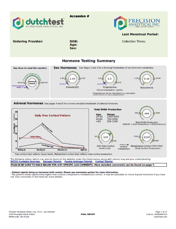 Le test DUTCH (Dried Urine Test for Comprehensive Hormones) COMPLET dresse un bilan hormonal avancé et détaillé. Cette analyse est utilisée pour évaluer le profil mais aussi le métabolisme hormonal.
