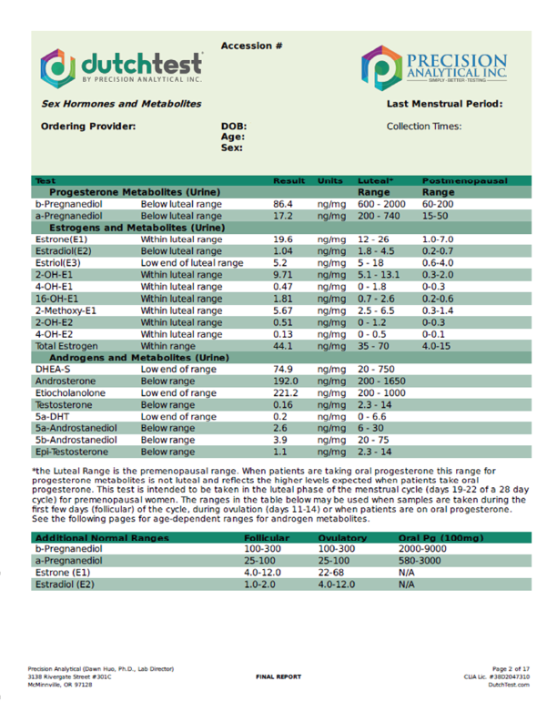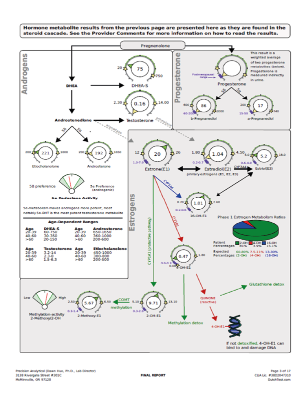 Le test DUTCH mesure une large gamme d’hormones et de métabolites, 44 au total, notamment:
