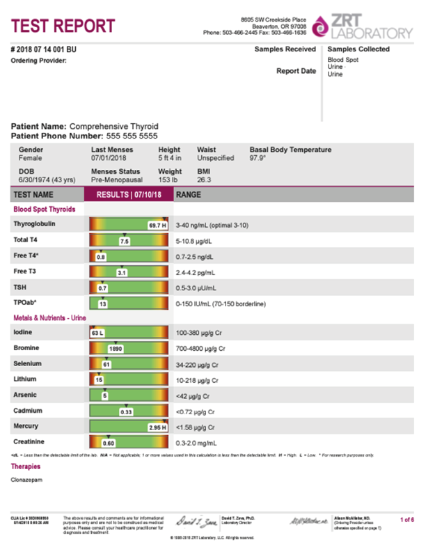 Cette analyse inclut plusieurs biomarqueurs clés qui fournissent une vue plus approfondie et globale de l’état de la thyroïde, y compris les niveaux d’hormones thyroïdiennes, la présence d’anticorps thyroïdiens mais aussi une évaluation des taux urinaires de certains cofacteurs essentiels et d’autres éléments perturbateurs de la fonction thyroïdienne.