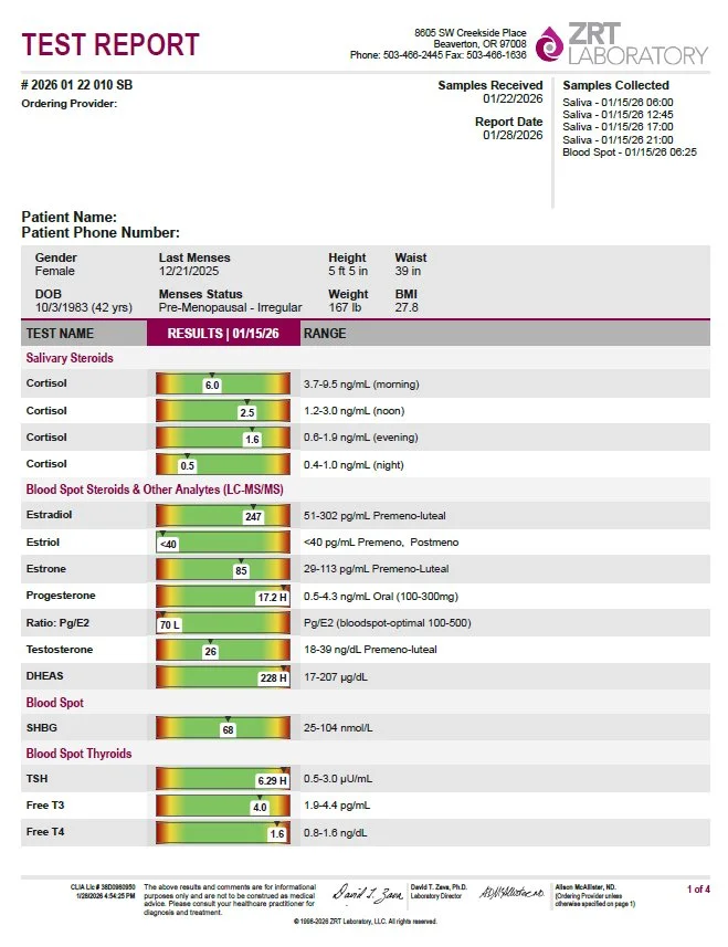 Cette analyse mesure une gamme d’hormones essentielles, à partir de divers échantillons, permettant d’évaluer la santé hormonale globale, atténuer les déséquilibres hormonaux et optimiser le bien-être lié à la reproduction, à la ménopause, au stress, et à la fonction thyroïdienne.